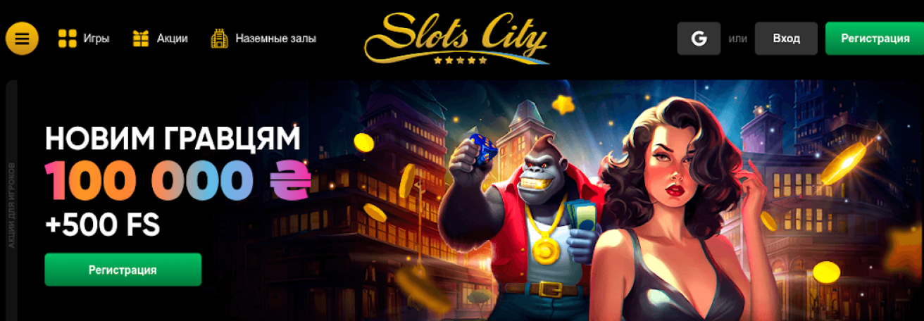 - SlotsCity казино з мінімальним депозитом у 100 UAH