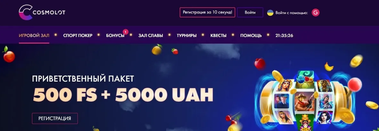 - Бонусні ставки від 1 UAH у казино Cosmolot