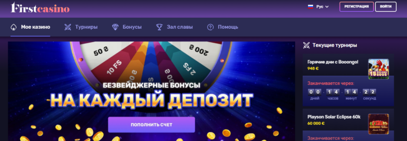 Під поповнення балансу First Casino відводить картки VISA, Master Card з межами трансакції 50 – 29,999 UAH. Альтернативно, внести гроші у розмірі 50 – 5000 можна через термінали EasyPay, City24. Виведення казино робить на банківські картки: