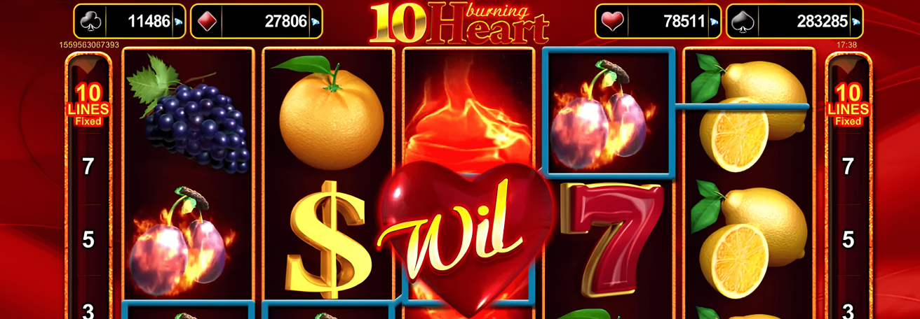 10 Burning Heart – слот, наповнений приємним почуттям ностальгії за часами, коли майже в кожному місті світу стояли гральні автомати з фруктовою тематикою.Тут ви зможете побачити класичні символи кавунів, лимонів, злитків золота, а також дзвіночків. Зображення серця тут виступає Wild-символом, який здатний замінювати інші символи та допомагати гравцеві складати виграшні комбінації.