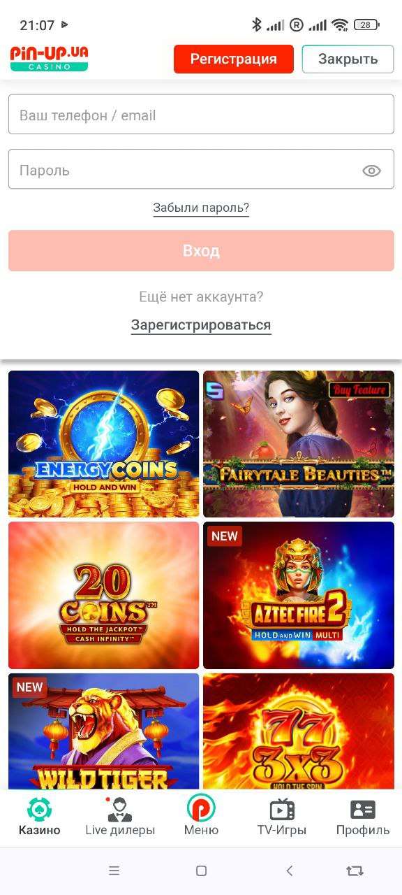 Официальное мобильное приложение казино Pin-up