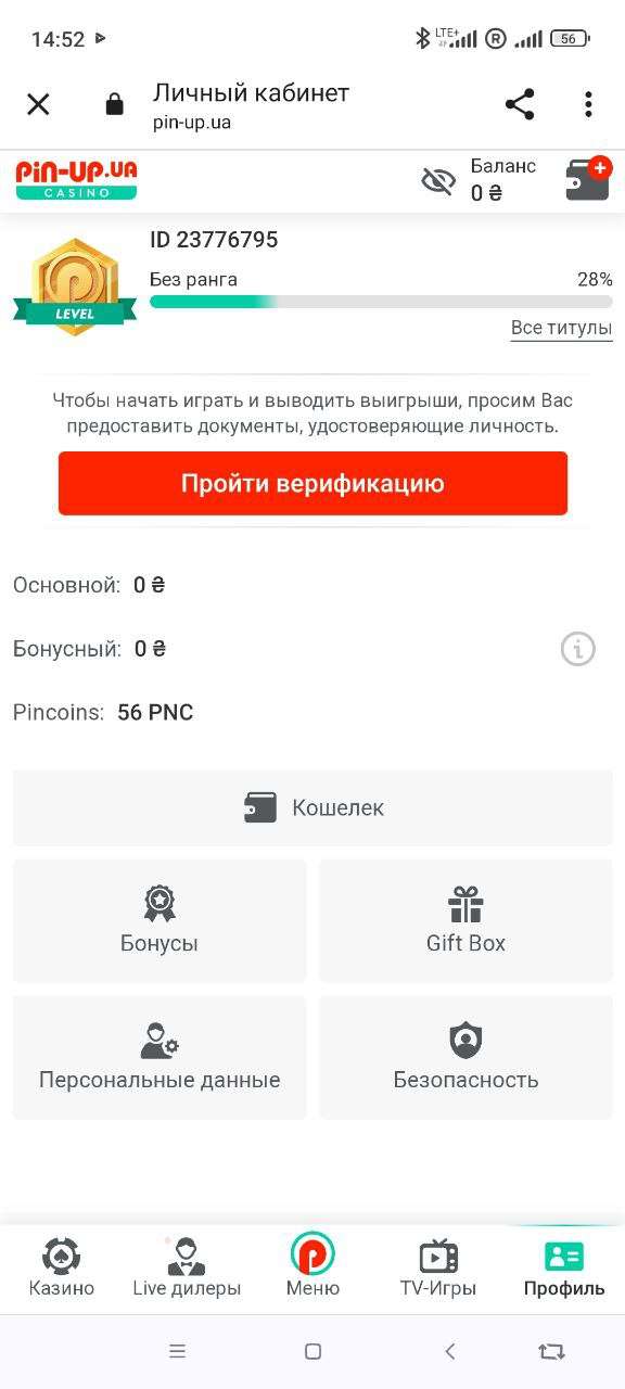 Создание личного кабинета через приложение Pin Up:
