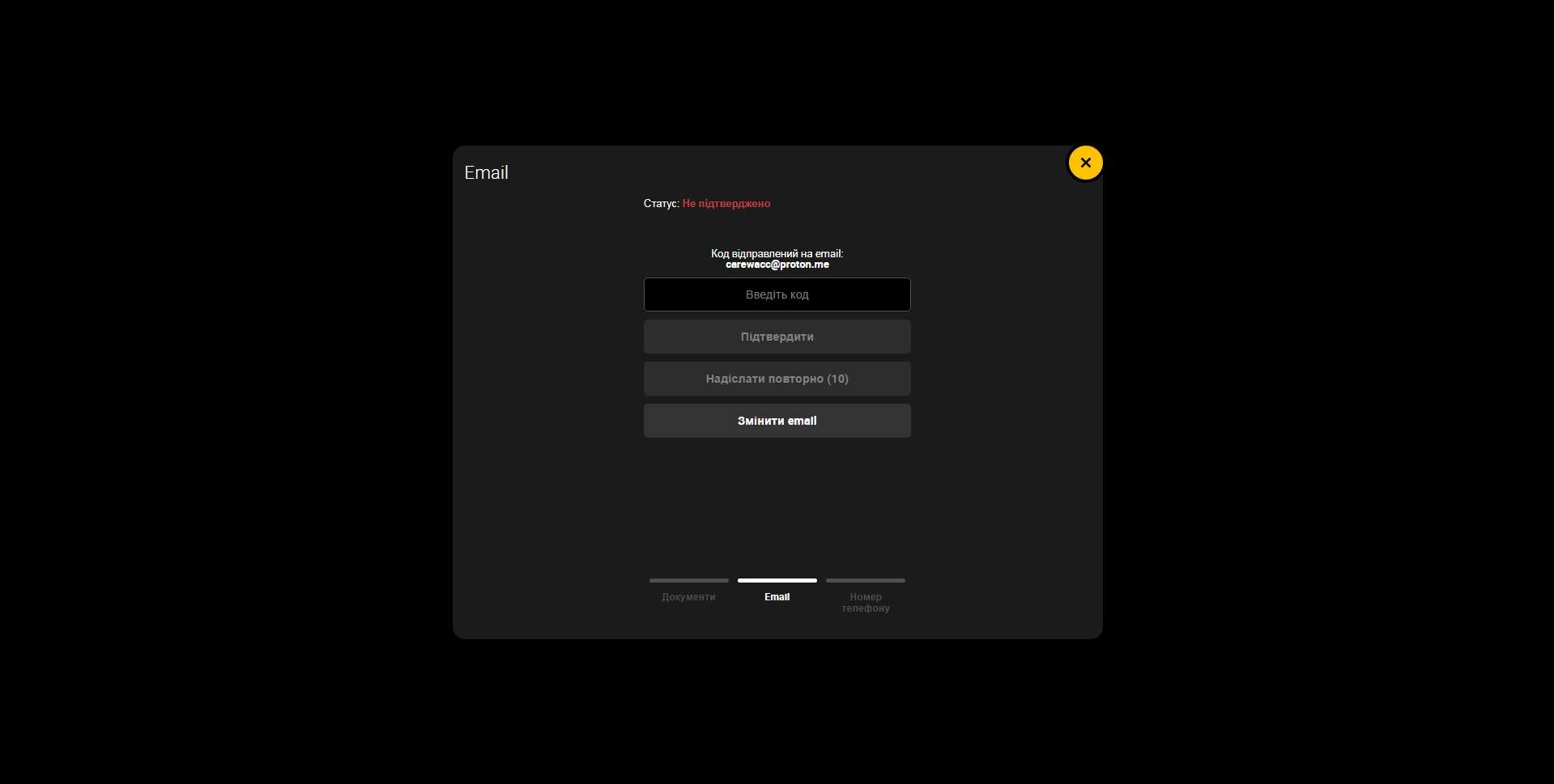 - Email. Потребуется ввести код, отправленный на адрес почты, указанной при регистрации.